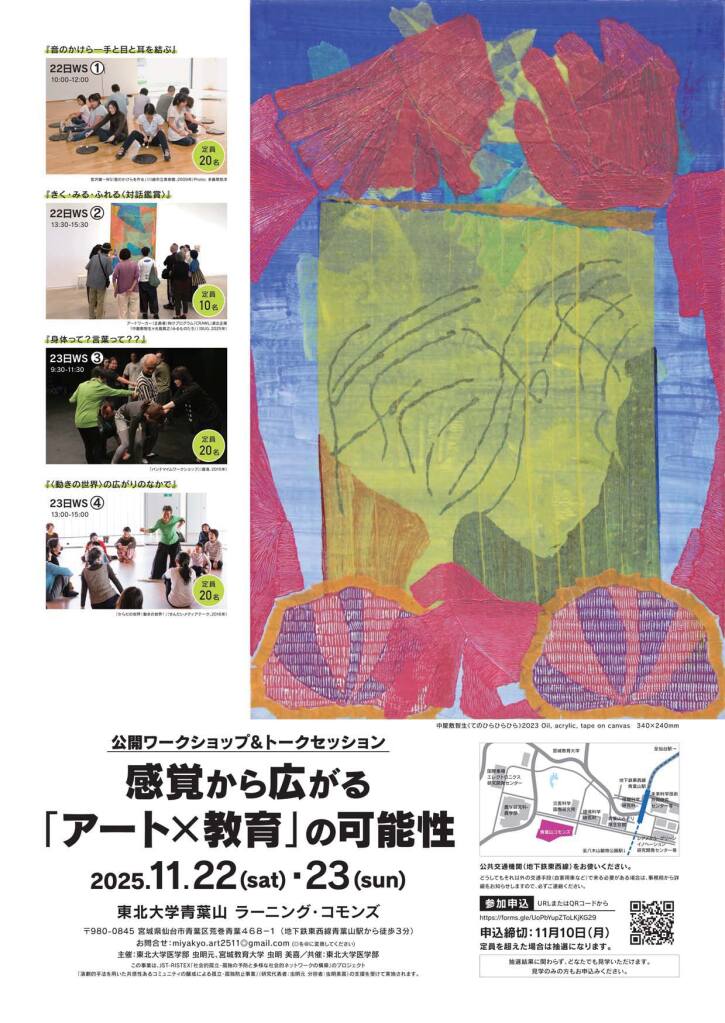 11月22日(土)23日(日)に ”感覚から広がる「アートx教育」の可能性” というワークショップ&トークセッションのイベントを東北大学 青葉山コモンズで行いました。